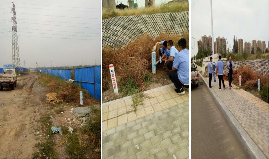 今年夏天,為了更清晰的了解線路走向、拐點(diǎn),也為了防止別公司施工意外破壞我公司管線。安全設(shè)備部在整個(gè)停暖期間對(duì)公司管轄范圍內(nèi)各主要線路及各拐點(diǎn)位置進(jìn)行了下樁做為標(biāo)識(shí),這樣既方便我們自己對(duì)管線位置的明確,在出現(xiàn)突發(fā)事故時(shí)方便處理,也能作為警示作用,讓其他人也知道下有管線,在施工作業(yè)時(shí)能夠謹(jǐn)慎處理。本圖為9月4日對(duì)熱力井E9及以北沿線下樁