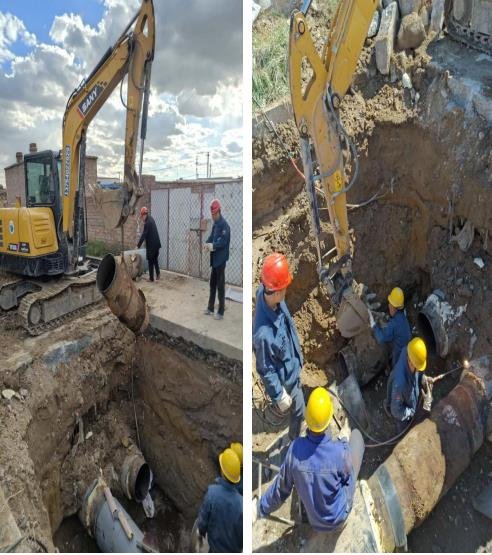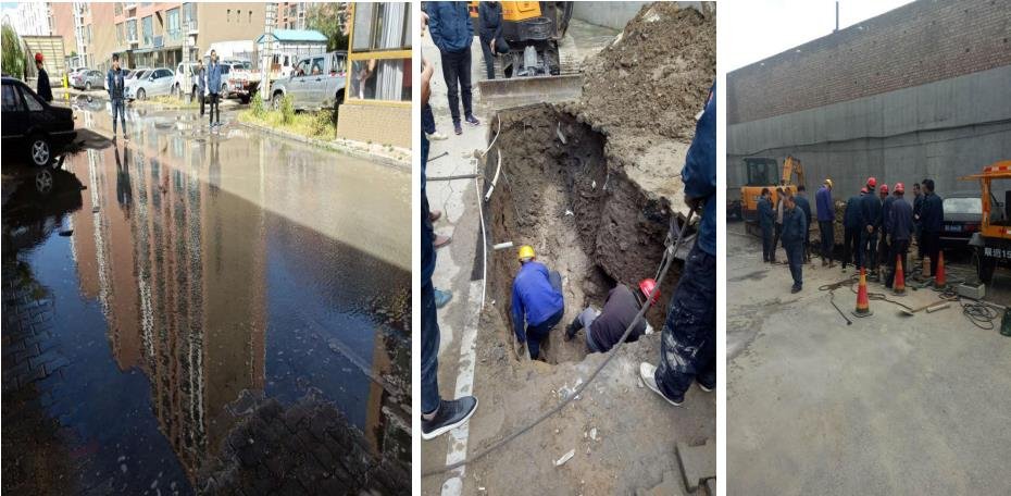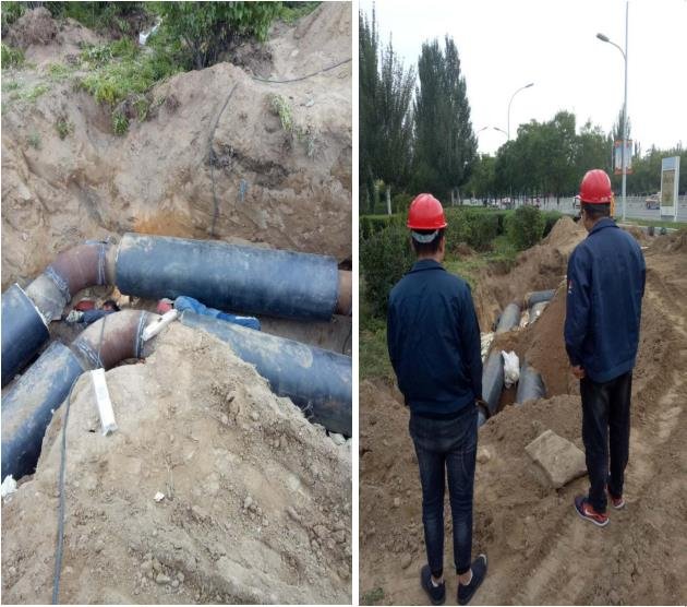 9月28日上午,松石名第突然出現(xiàn)管道跑水現(xiàn)象。公司領(lǐng)導(dǎo)緊急調(diào)派檢修及施工機(jī)械進(jìn)入現(xiàn)場開展搶修工作。由于正處于供暖前期充水階段,挖開漏水點(diǎn)后需要泄完管道內(nèi)部的水才能展開作業(yè)。泄水過程中發(fā)現(xiàn)漏點(diǎn)是前幾年搶修時(shí)的焊口部位,由于充水壓力變化再次出現(xiàn)問題。通過檢修及各部人員的協(xié)調(diào)配合,經(jīng)過大家一天的努力終于將漏點(diǎn)處理并回填。
