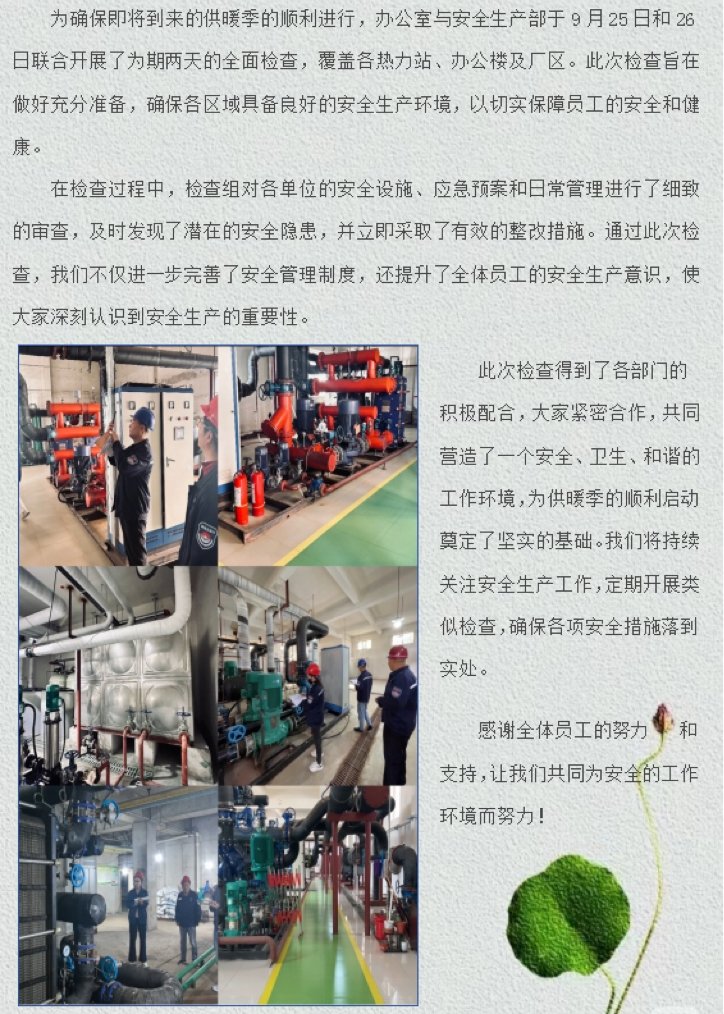 辦公室與安全生產(chǎn)部聯(lián)手開展熱力站、辦公樓大檢查