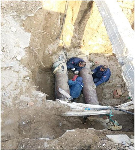 經(jīng)過一天一夜的連續(xù)搶修工作,成功的將一號公館和運(yùn)管兩處問題管線全部更換。一號公館供水管線更換完畢取出后發(fā)現(xiàn)已經(jīng)銹蝕相當(dāng)嚴(yán)重,壁厚不足1mm,管壁密密麻麻全是砂眼。31日搶修隊(duì)伍準(zhǔn)備對作業(yè)面進(jìn)行保溫、回填工作時(shí)發(fā)現(xiàn)右側(cè)回水管路也已經(jīng)被腐蝕。經(jīng)過測量管壁厚度無法繼續(xù)正常安全運(yùn)行。公司領(lǐng)導(dǎo)到現(xiàn)場查看后決定對其隱患處包裹新管材焊接,31日晚22:00結(jié)束工作,恢復(fù)供熱。