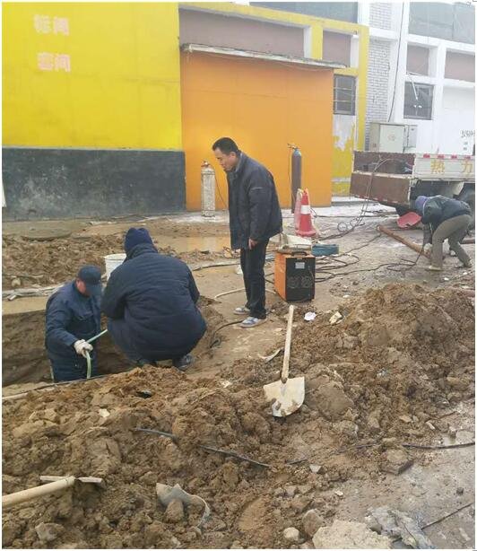 11月29日,公司調(diào)度報(bào)告樂(lè)園西北拐角出現(xiàn)漏點(diǎn)。接到搶修命令后負(fù)責(zé)樂(lè)園管網(wǎng)檢修B組迅速趕赴現(xiàn)場(chǎng)。經(jīng)過(guò)對(duì)現(xiàn)場(chǎng)的查勘及挖掘漏點(diǎn),發(fā)現(xiàn)漏點(diǎn)位于管道分支焊縫處。分支管道已經(jīng)腐蝕嚴(yán)重,無(wú)法繼續(xù)使用。經(jīng)過(guò)幾個(gè)小時(shí)的作業(yè),重新更替了原有支線部分管路。搶修時(shí)正遇大風(fēng)降溫,室外氣溫零下四五度,穿著棉衣也是瑟瑟發(fā)抖。即便是這樣,為了保證廣大熱用戶不在寒冬中挨凍,搶修隊(duì)員也要冒著堅(jiān)寒守護(hù)冬日里的溫暖。