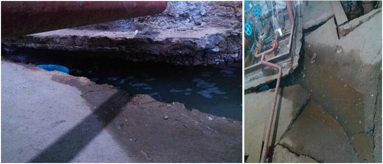 11月24日,紫竹熱力站站長(zhǎng)報(bào)告金大地站內(nèi)地面塌陷。接到通知隨即安全設(shè)備部部長(zhǎng)和技術(shù)部部長(zhǎng)趕往現(xiàn)場(chǎng)前去查看。通過(guò)現(xiàn)場(chǎng)觀察及站長(zhǎng)報(bào)告,由于金大地?zé)崃φ菊緝?nèi)無(wú)排水系統(tǒng),平時(shí)水化清洗設(shè)備廢水全部排站內(nèi)造成站內(nèi)地面下部懸空。機(jī)組地面基礎(chǔ)結(jié)實(shí),未對(duì)站內(nèi)設(shè)備造成影響。已通知土建方對(duì)其地面進(jìn)行修復(fù)。