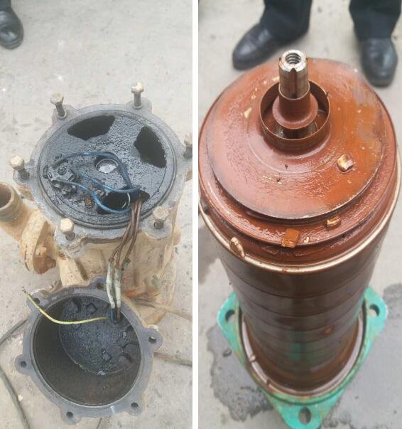 本月造成3臺(tái)設(shè)備損壞,圖一變頻器電容爆裂。變頻器電容屬于易損品,09年投入生產(chǎn)已運(yùn)行8年,經(jīng)過電氣專業(yè)檢修人員檢測(cè)電容已達(dá)到壽命。圖二地下站污水泵由于接線柱處密封不良導(dǎo)致電機(jī)進(jìn)水需要重新纏電機(jī)。圖三補(bǔ)水泵解體由于氣蝕造成泵體四件套損壞嚴(yán)重,泵體抱死,電機(jī)燒毀。需要更換四件套并重纏電機(jī)。