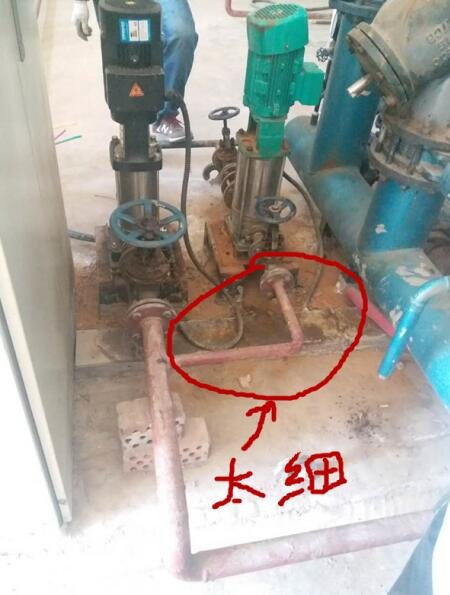 維修后的補水泵安裝在備用泵位置,通過打壓試運行效果不佳,無法達到正常壓力條件。經(jīng)過詳細詢問熱力站運行人員了解到,之前此位置備用泵同樣出力不夠,無法滿足壓力需求。通過查找原因,補水泵入口閥門卡流量,威樂泵廠家到現(xiàn)場查看后指出泵入口管路太細無法達到水泵流量要求。