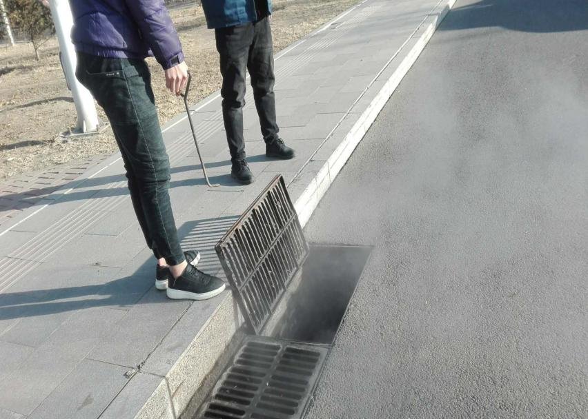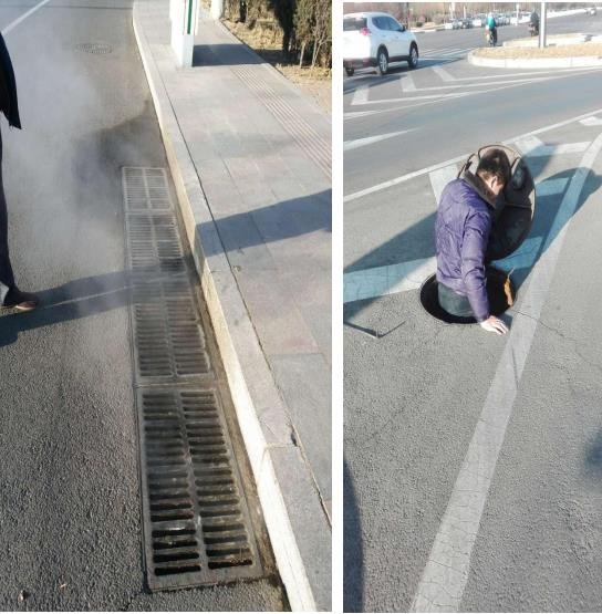 17年科技路與黃河大街口我公司供熱管線發(fā)現(xiàn)漏點,由于維修涉及道路挖掘。后經(jīng)過公司會議決定對故障點兩頭閥門進行關閉。暫時控制事故跑水。近期天氣逐漸回暖,3月15日檢修對其一側閥門開啟,對管路更換做前期準備工作。安全設備部到現(xiàn)場進行查看,下圖為管線跑漏的熱水已串到下水道形成霧氣。
