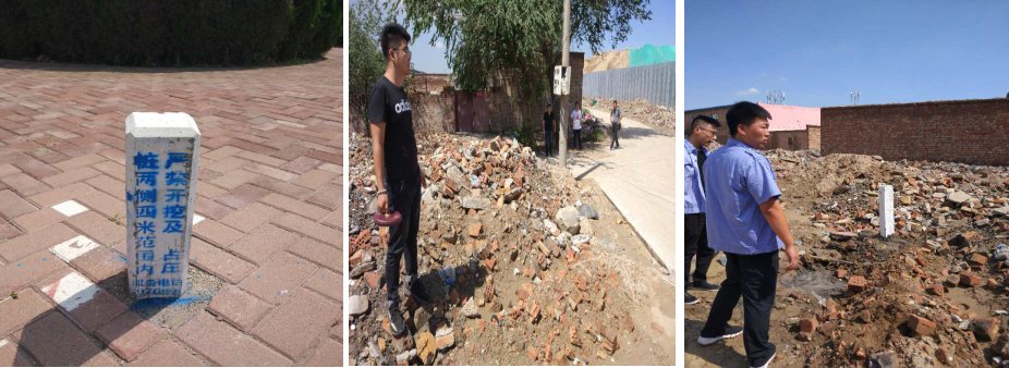 本月,測繪人員按我公司要求繼續(xù)對我公司管線進行測量定位。我公司隨行設(shè)備部與技術(shù)部人員同時對已測量到的拐點進行了位置標(biāo)記,同時公司劉總也親赴現(xiàn)場查看了測量進度并做出指示。右圖為校園南路吾悅廣場南墻外所探測位置,并且立樁定標(biāo)。